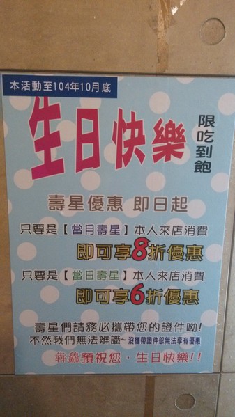 當日壽星本人用餐享6折優惠