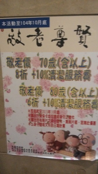 敬老價80歲以上享6折+10%服務費優惠