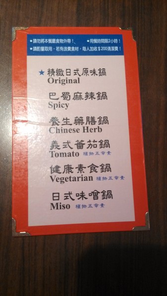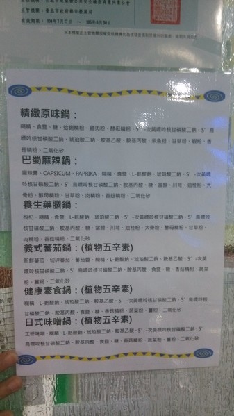 MENU-鍋物有精緻日式原味鍋、巴蜀麻辣鍋、養生藥膳鍋、義式