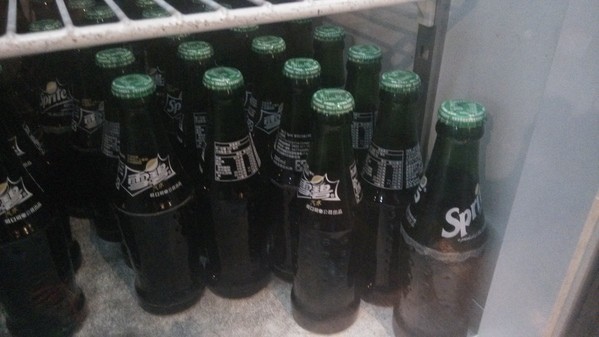 菊花茶、瓶裝可口可樂、瓶裝雪碧、美粒果蘋果汁以及中華豆花