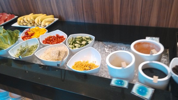 沙拉吧--有萵苣、彩椒、綠豆芽、小蕃茄、苜蓿芽、小黃瓜、玉