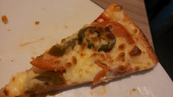 ,即使挑掉後只剩下麵皮跟辣腸與起司,但是還是有殘留些辣度