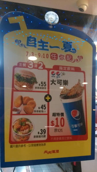 F大杯百事可樂10元優惠價+鮮酥雞肉羹39元+鮮酥雞肉羹39元--->88元
