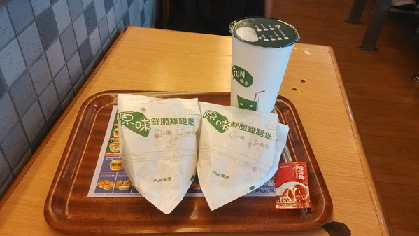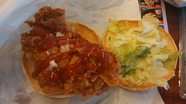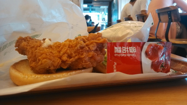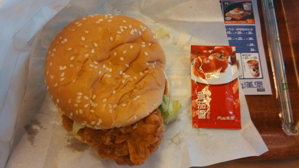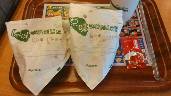 量,而另一個鮮脆雞腿堡,再淋上一包的蕃茄醬汁,味道增添了