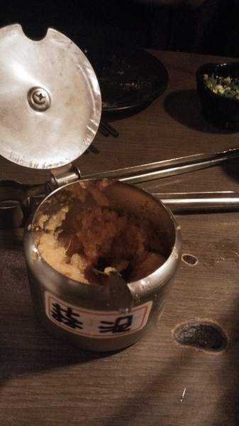 麻糬的時候並沒有此醬料出現在桌面,不曉得是想當隱藏板醬料