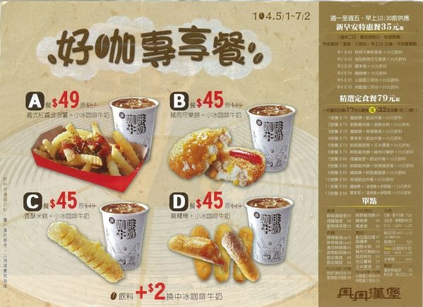 好咖專享餐B餐45元:豬肉可樂餅+小冰咖啡牛奶