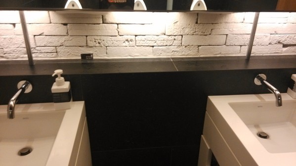 洗手間-男廁不只隱密一開始不易發現,連洗手檯的垃圾桶都不