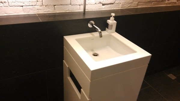 易發現是跟洗手台整個融入在一起(因為有人找了好久)
