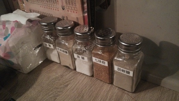 調味料區--除了餐具旁的醬汁外,另外在一旁也會有調味粉末的