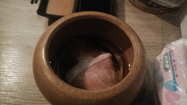 調味梅花豬-甕裡面有調味的醬汁加上梅花豬肉,吃完後可以加