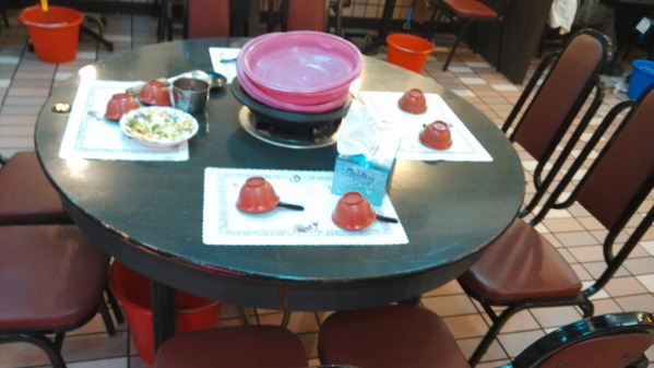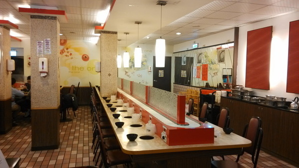 屬於迴轉涮涮鍋的方式在經營,另外也有設置自助區可以夾一些