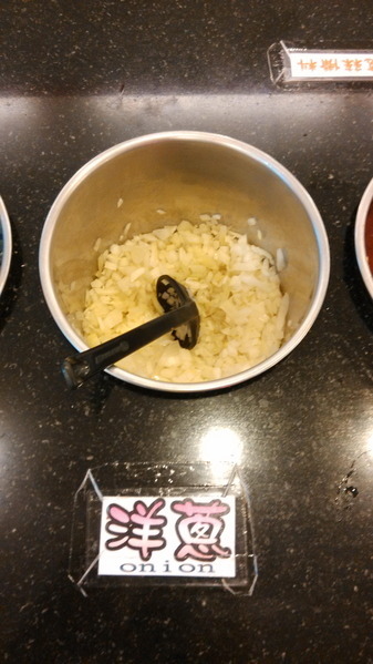 沙茶-廣式沙茶醬,味道吃起來會有點微辣,搭配洋蔥與蔥花,
