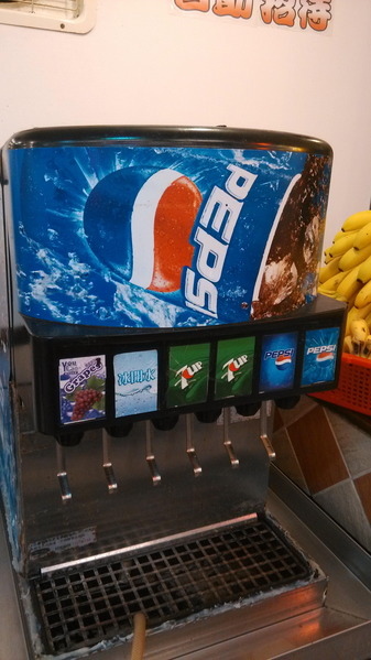 二樓百事可樂系列汽水機-有葡萄酥打汽水、冰開水、七喜與百