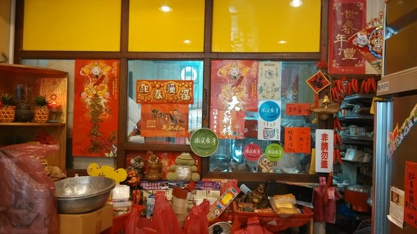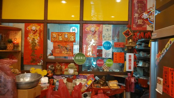 這一邊堆放的物品讓這一邊像是農曆過年準備拜拜的一個感覺,