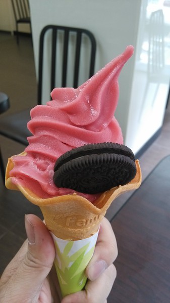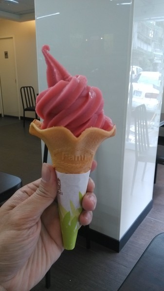 ,因此就到附近的這一家全家來吃個草莓口味的霜淇淋,雖然當