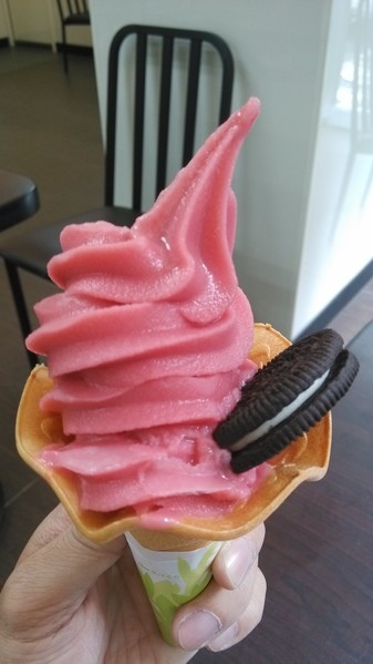 沒聽說的情形,因此就還是先來支草莓霜淇淋來吃一下