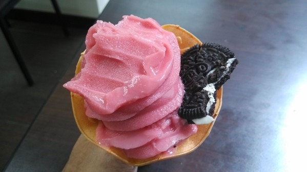 吃的時候店家因為供貨不足,可惜沒有吃到原味的草莓霜淇淋,