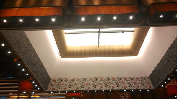 一半的樓層,空間上算是相當的寬敞,而在裝潢上,挑高的取餐