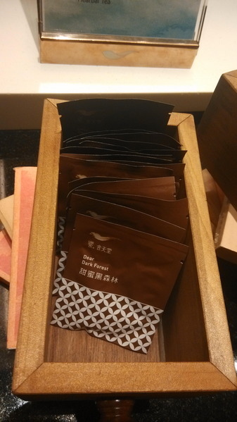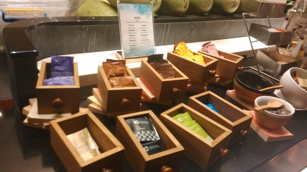 熱茶區-提供薰衣草青茶、碳焙烏龍、甜蜜黑森林、芒果紅茶、