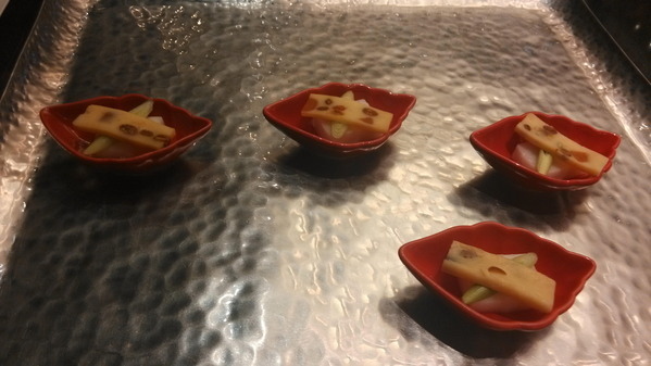 薄嫩的生牛肉搭配醬醋汁,味道吃起來微酸中帶點