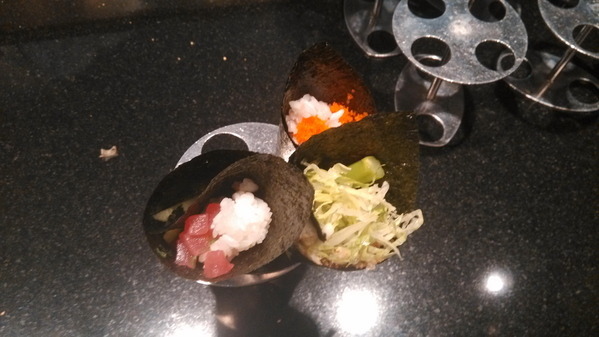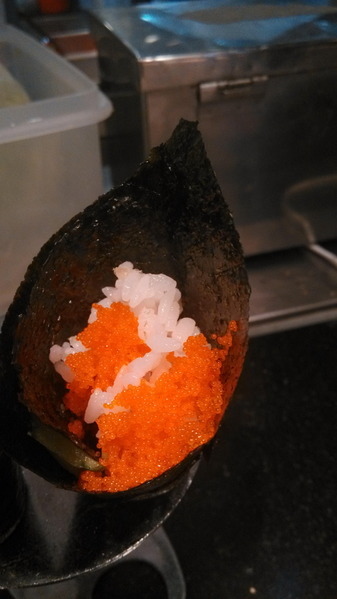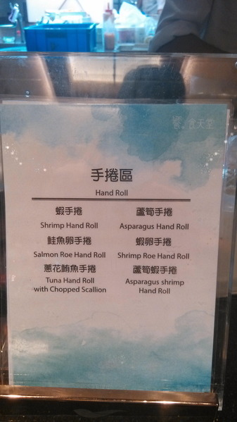 手捲區-提供蝦手捲、蘆筍手捲、鮭魚卵手捲、蝦卵手捲、蔥花