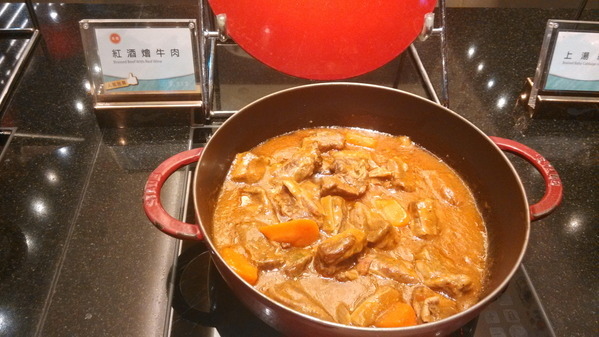 牛肉大塊吃起來又帶點嚼勁,由紅酒跟其他的配料