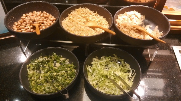以蘆筍為主體搭配高麗菜絲再加上其他的配料,吃起