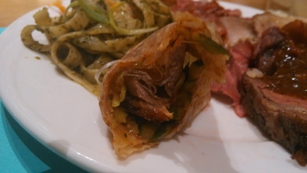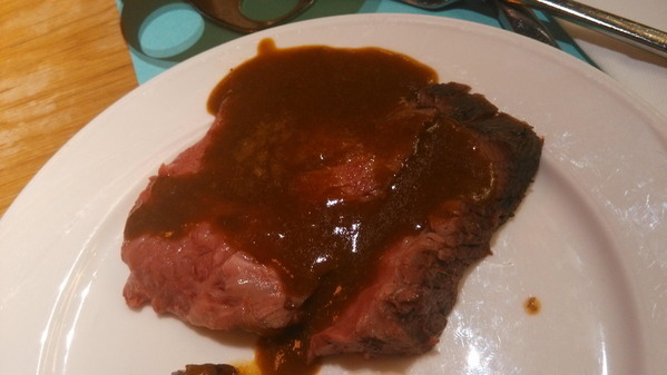 自家香烤美國牛-牛肉的口感鮮嫩,不過或許是上桌一段時間了