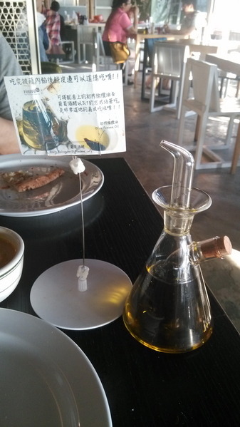 用,而另外桌上也有橄欖油與葡萄酒醋可以把披薩餅皮當成麵包