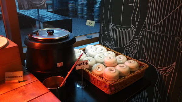飲料區--杯子放置在飲料的下方櫃子,特別是熱飲區選用的是瓷