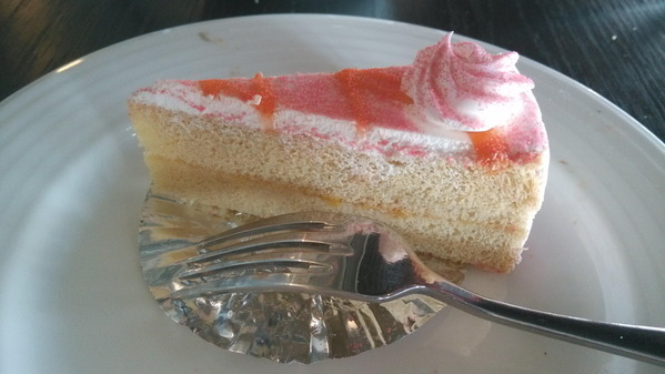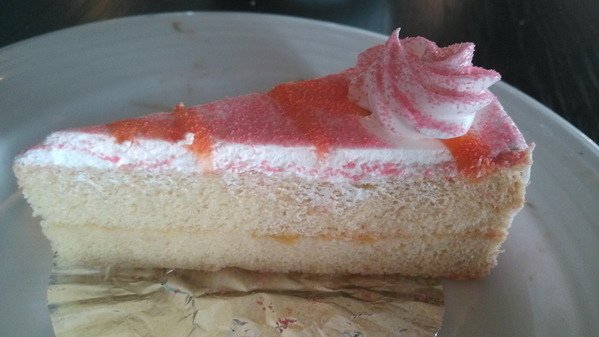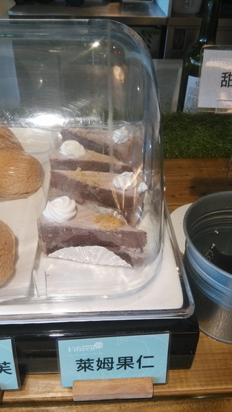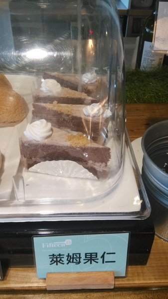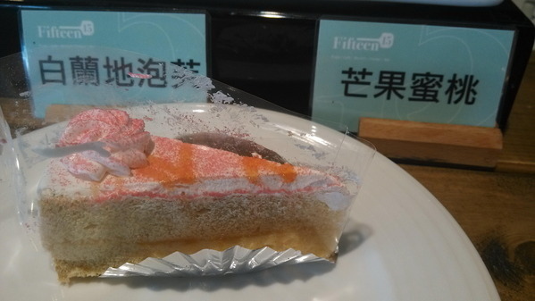 萊姆果仁蛋糕-等吃完披薩後要來拿時已經改成芒果蜜桃蛋糕了