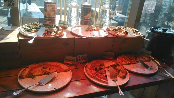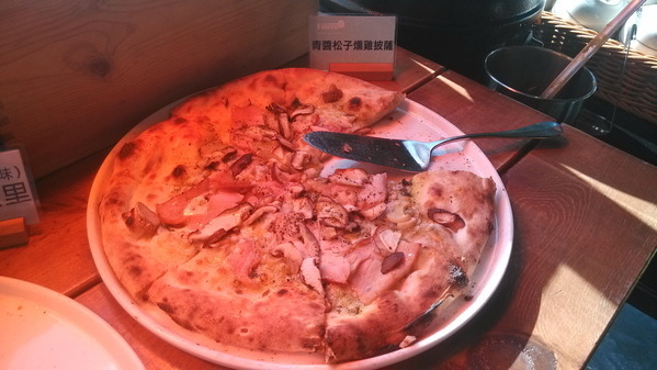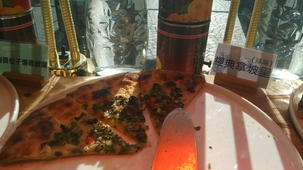 用的是現做薄片型的披薩,因此有時候人一多很快就被拿光了,