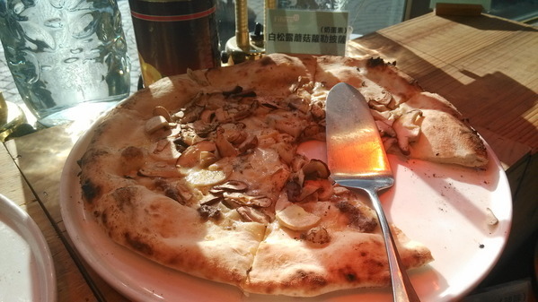 白松露蘑菇蘿勒披薩(蛋奶素)-雖然蘿勒的味道不重,不過上