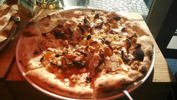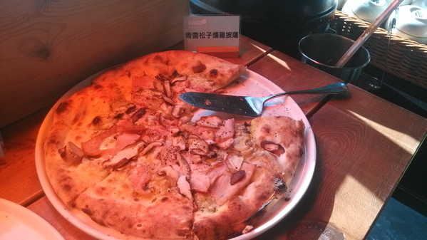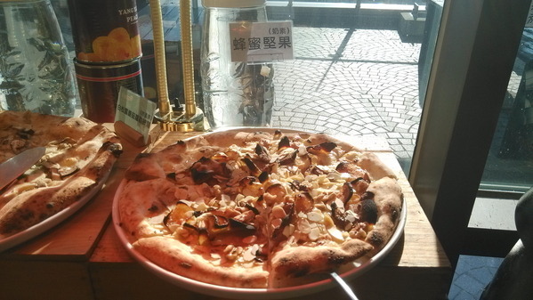 披薩,味道裡帶有微微的蜂蜜香氣,而吃起來則是滿口的堅果鬆