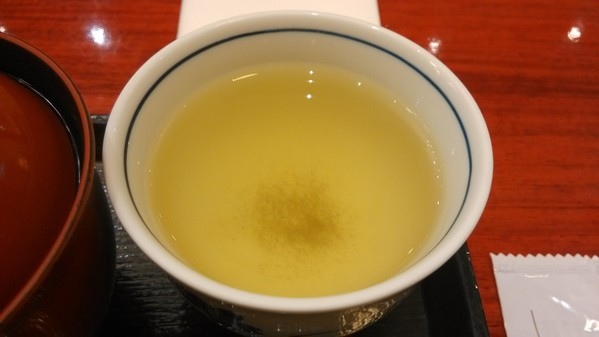 抹茶-茶水裡有著淡淡的抹茶味道與抹茶粉渣,微熱的口感味道