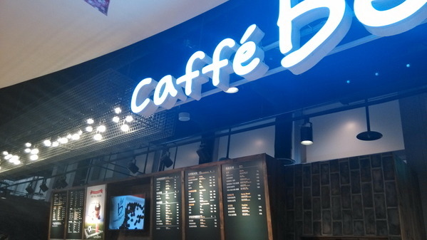 caffe bene韓國咖啡連鎖店,碩大的時鐘與咖啡廳式的裝潢,