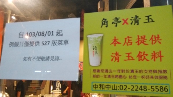 繼上一篇角亭新增了COCO手搖式冷飲後,最近這一次來已經改為清玉