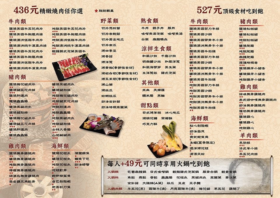 在食材的部分,目前假日僅提供527元頂級食材吃到飽選擇,所以主