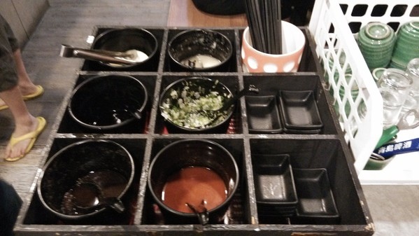 兩樣所以不確定是沙茶醬、蒜泥、檸檬、燒烤醬油、鹽蔥醬、特
