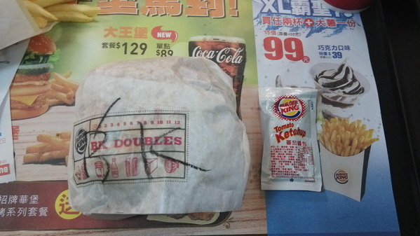 漢堡王大王堡實體大小-面積有三包多左右的蕃茄醬包面積