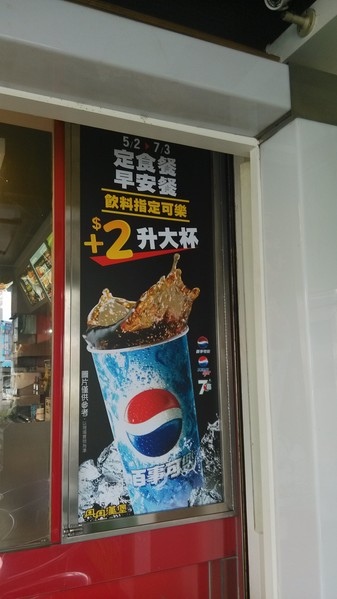 另選擇其他的定食餐或早安餐的部份飲料若指定可樂可加2元升級成大杯