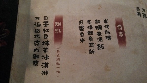 甜點類--每人限點一次,所以只能二則一,其實都這個價位了,