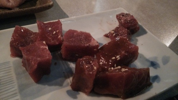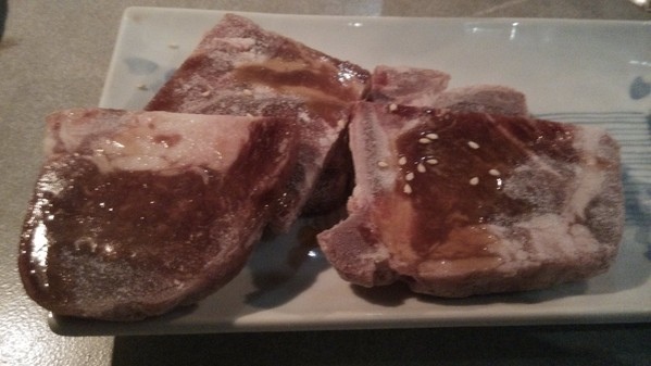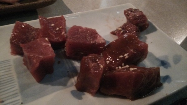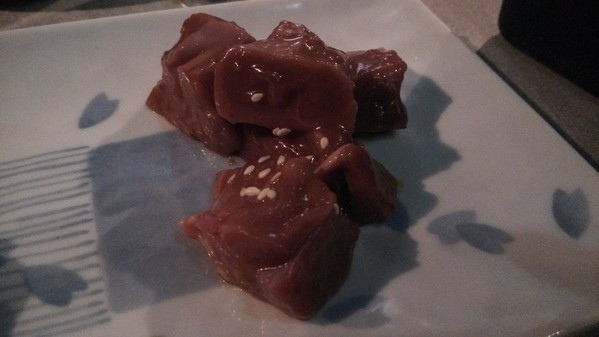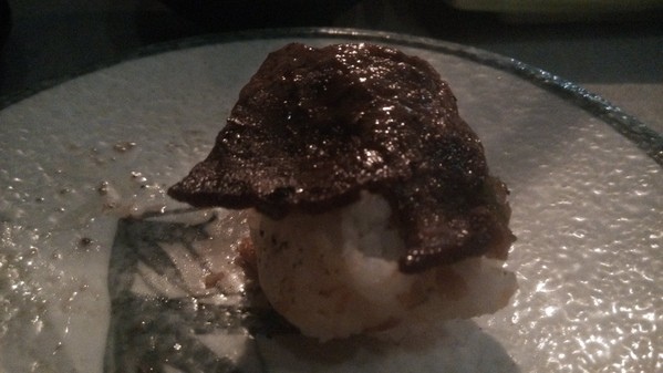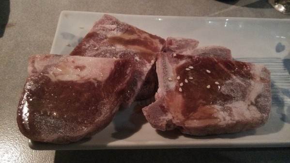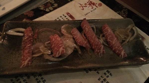 也可以搭配飯糰自製成生牛肉壽司也蠻不錯的,火烤及冰涼的口