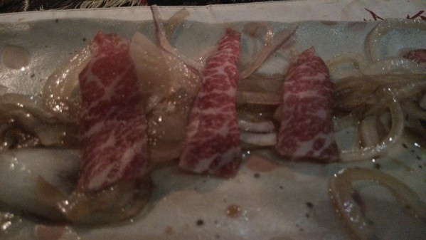 美澳和牛-肉片的油脂分不的還算均勻,吃起來的口感油嫩到像