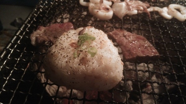 岩烤飯糰-份量適中,放在烤網上烤到金黃微焦的程度口感吃起