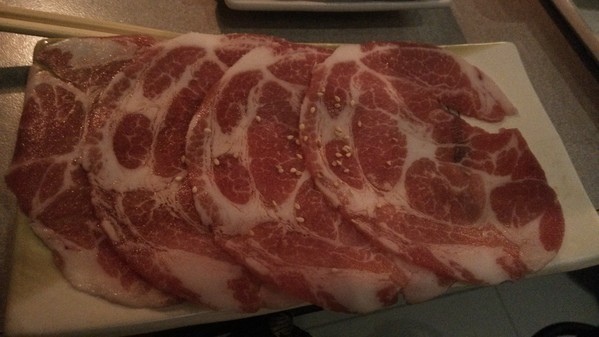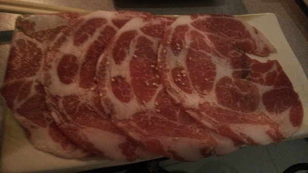 極黑豬梅花-肉片切的稍厚一些,或許是極黑豬的關係,吃起來