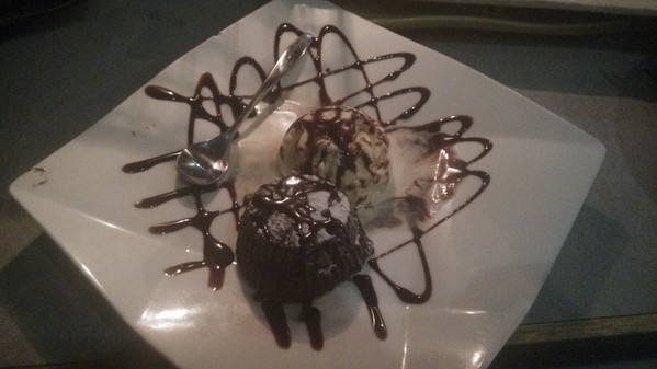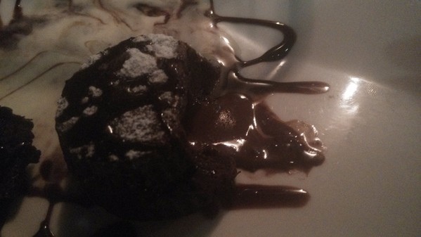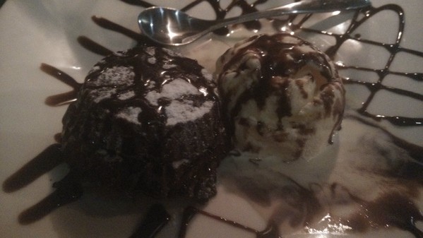 香濃的巧克力醬,而緊鄰在一旁的,則是火熱的巧克力熔漿蛋糕