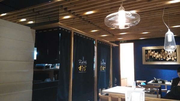 日式風味的餐廳一樣藍白色調中帶些木質建築風味在裡面,整體