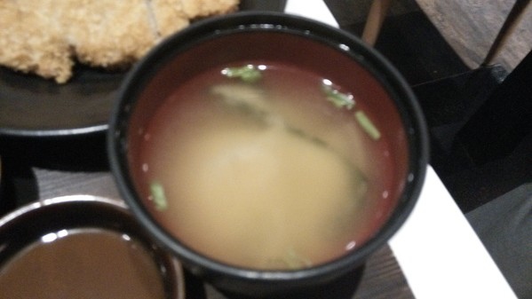 實的炸豬排搭配香Q又富有光澤的越光米相當的搭,另外味噌湯