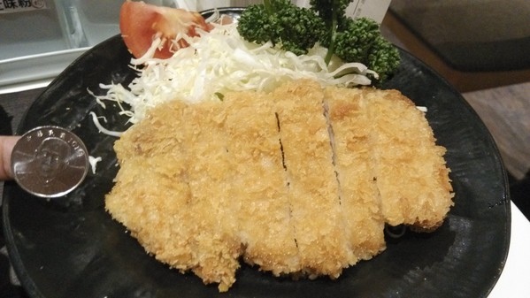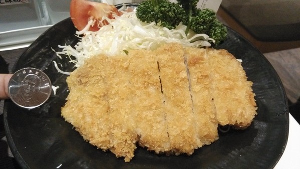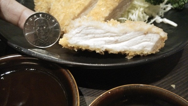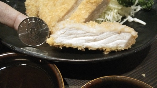 炸豬排大小與厚度比例-拿枚硬幣做個比例尺,份量上不管是厚